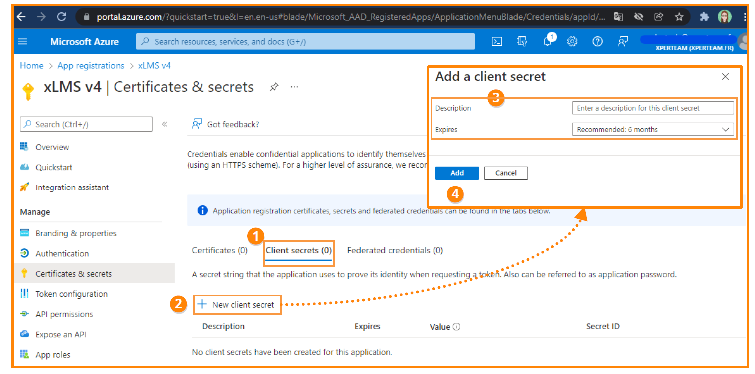 3/ Renseignez les champs Description et Expires 4 Cliquez sur Add