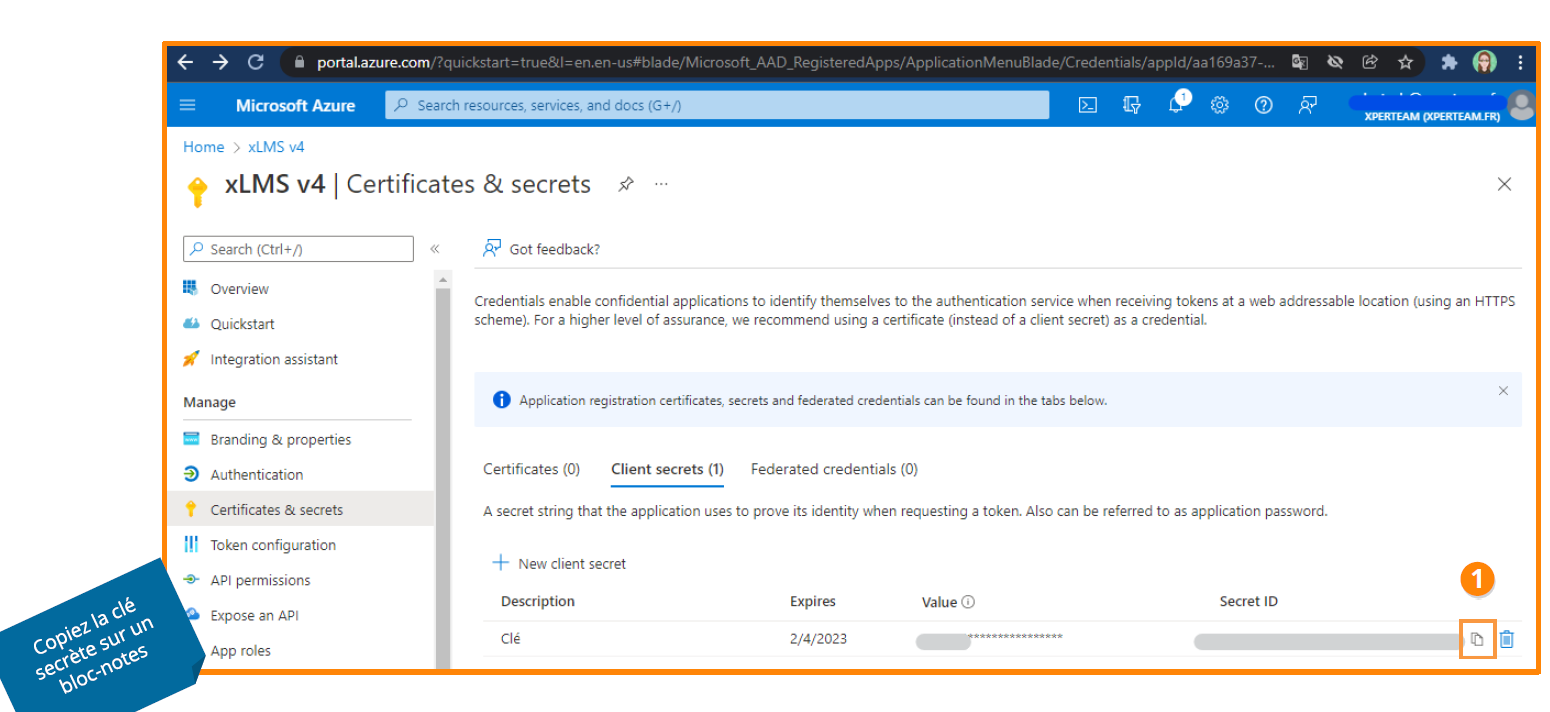 1/ Cliquez sur l’icône pour copier la clé secrète dans votre presse-papier (copy to clipboard)