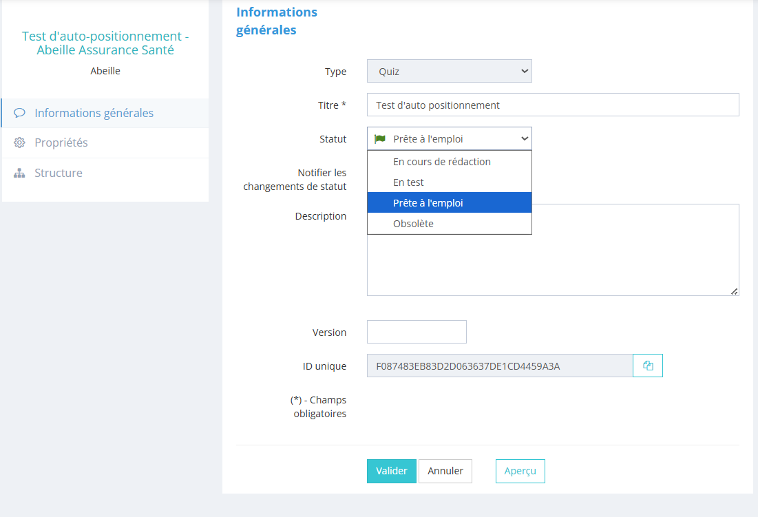 Il est possible d'ajouter une description à l'épreuve ainsi qu'un numéro de version.