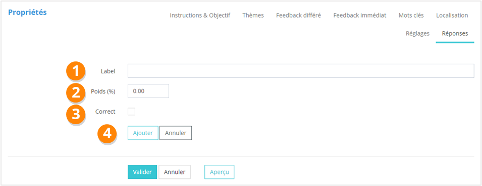 Lors de la création de nouvelles propositions de réponses, vous renseignerez :