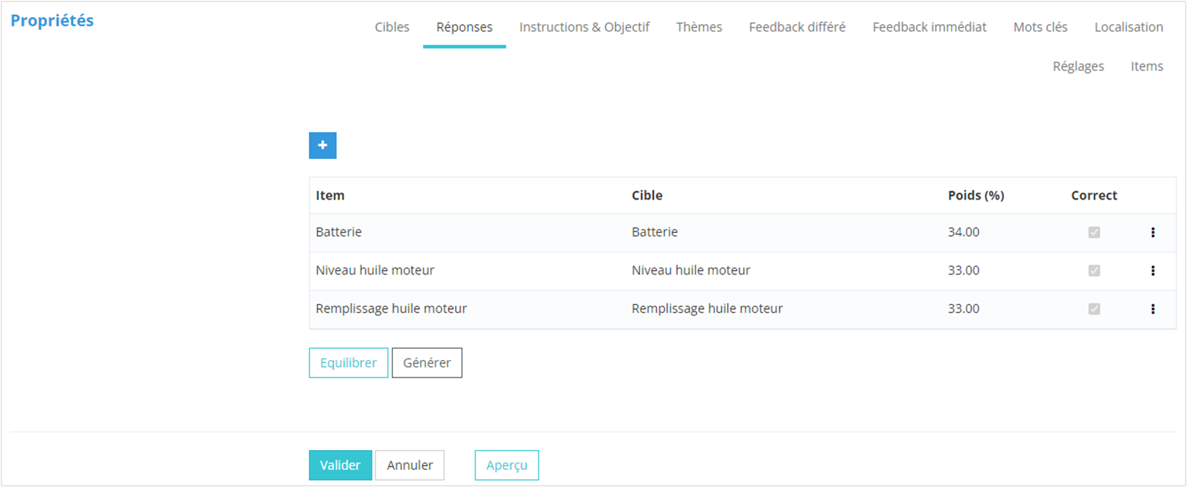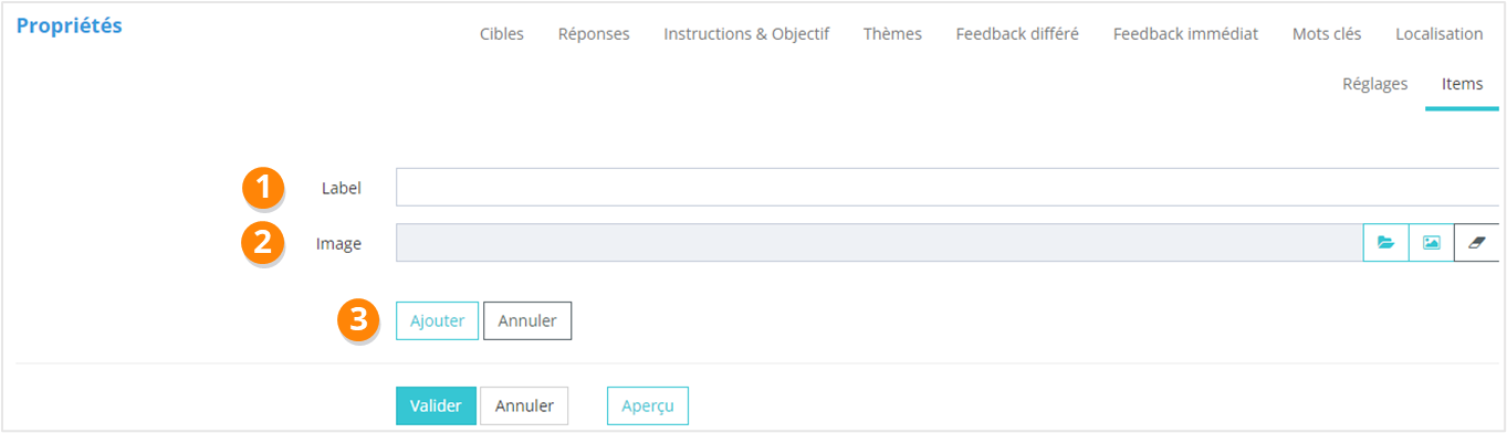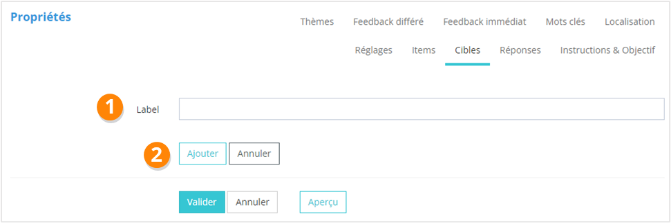 1. Ajouter une réponse, qui consistera en l’association d’un item avec une cible ;