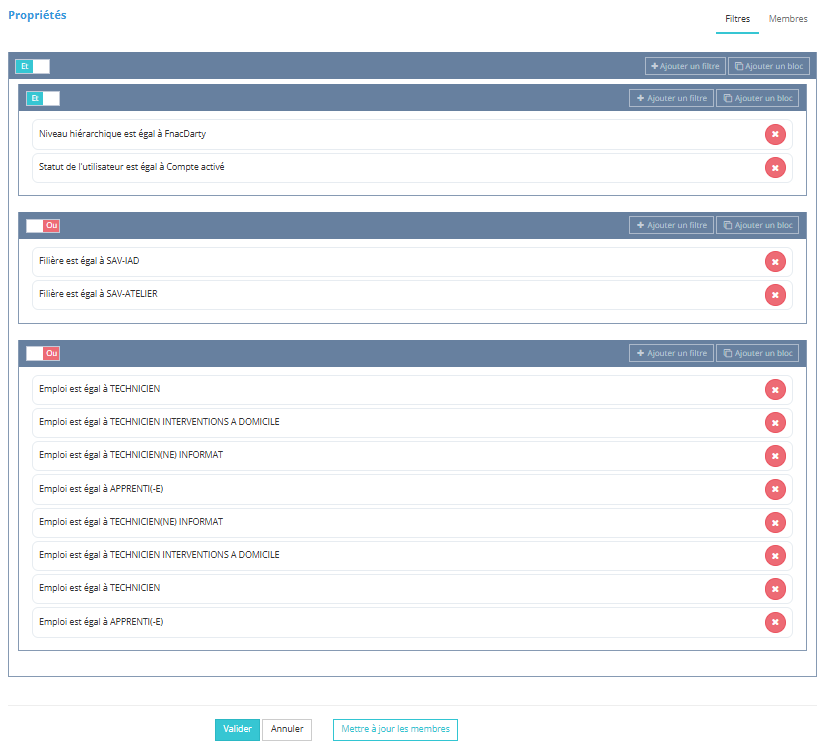 On va pouvoir créer plusieurs blocs et définir dans chaque bloc si c’est un ET ou un OU.