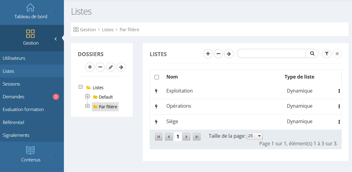 Les listes dynamiques sont basés sur des filtres et se recalculent automatiquement toutes les nuits. Il est possible de relancer manuellement le recalcul d’une liste.