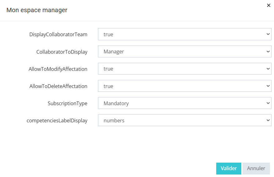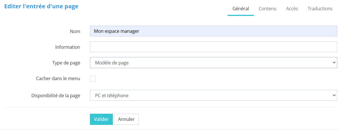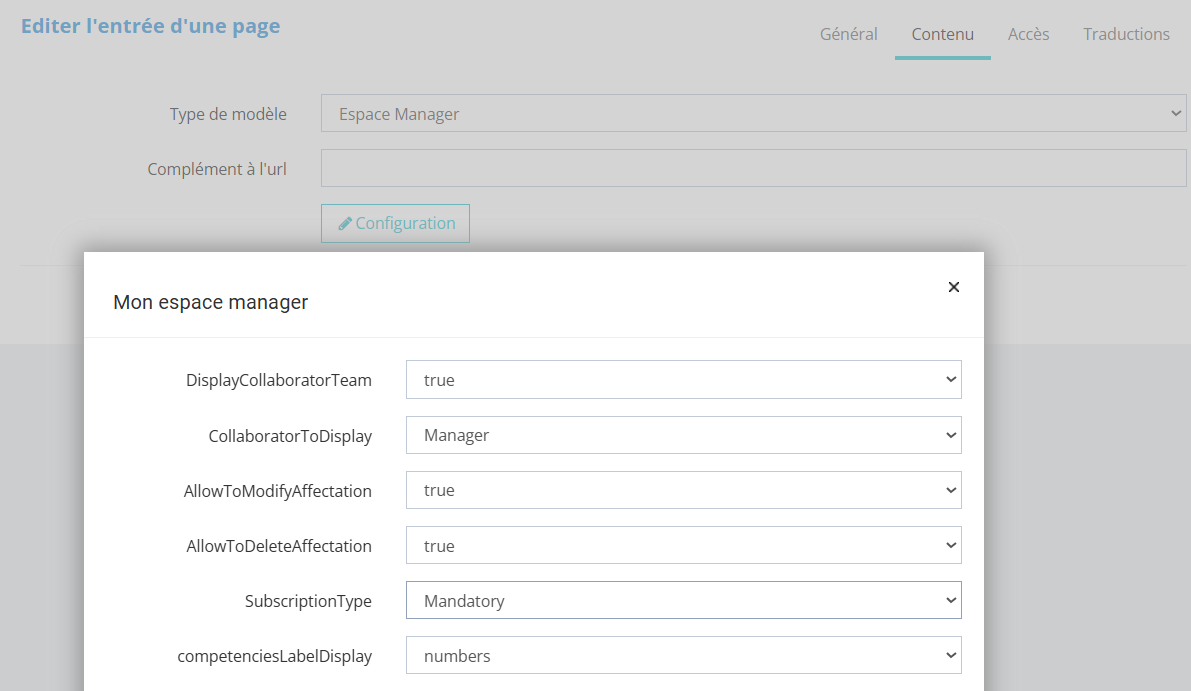 Dans l'onglet contenu, on choisit parmi la liste le type de modèle "Espace manager" |