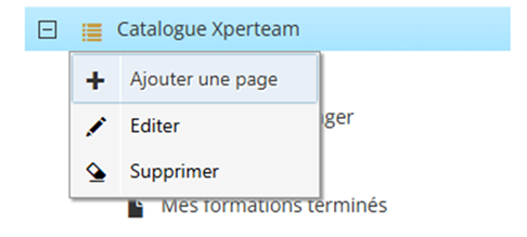 Au niveau de l'onglet Réglages, Front Designer, Pages, après avoir sélectionné la section où l'on souhaite ajouter cette page, on clique doit sur la souris et "ajouter une page". |