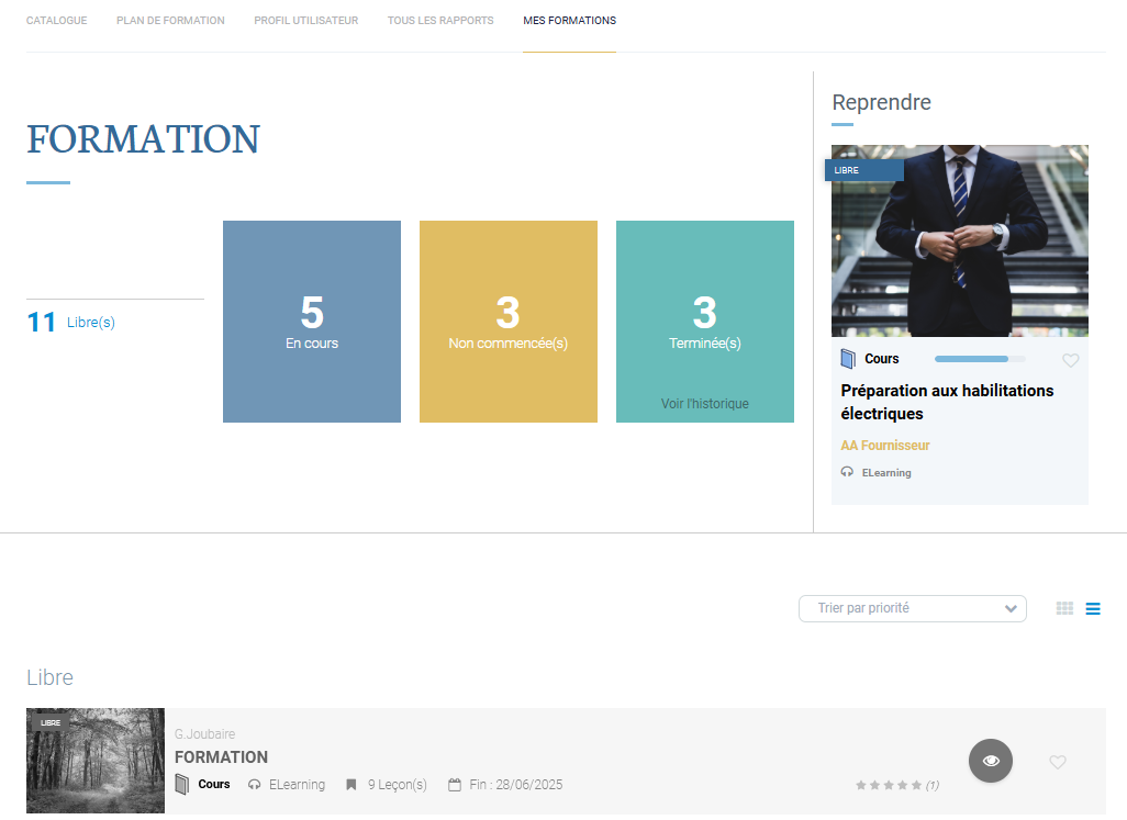 La page mes formations