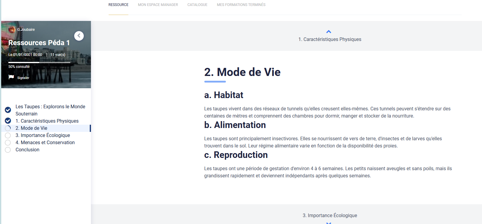 La page ressource pédagogique
