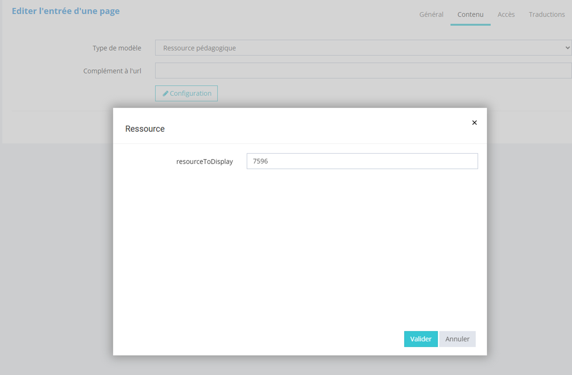 On note le numéro de la ressource pédagogique créé en amont (chiffre sur le lien URL)