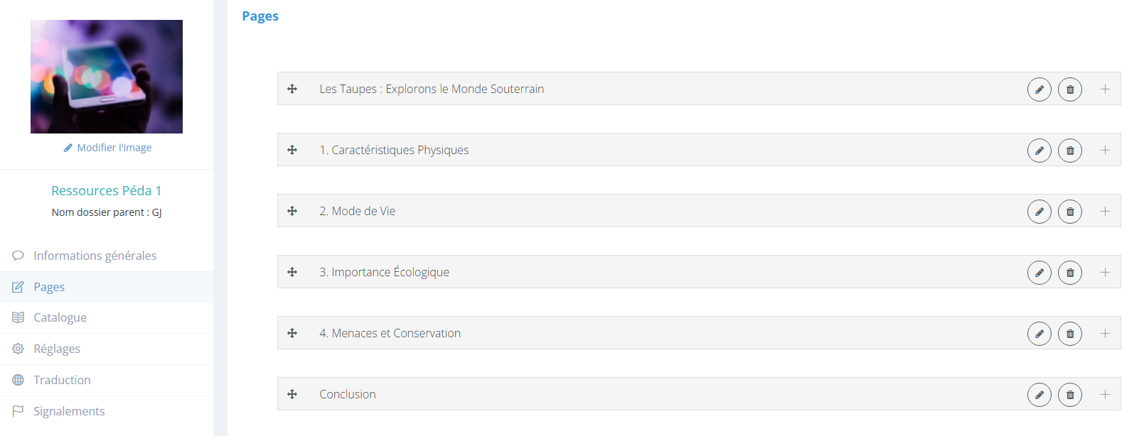 On note le numéro de la ressource pédagogique créé en amont (chiffre sur le lien URL)