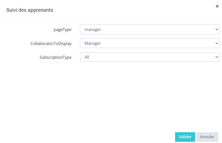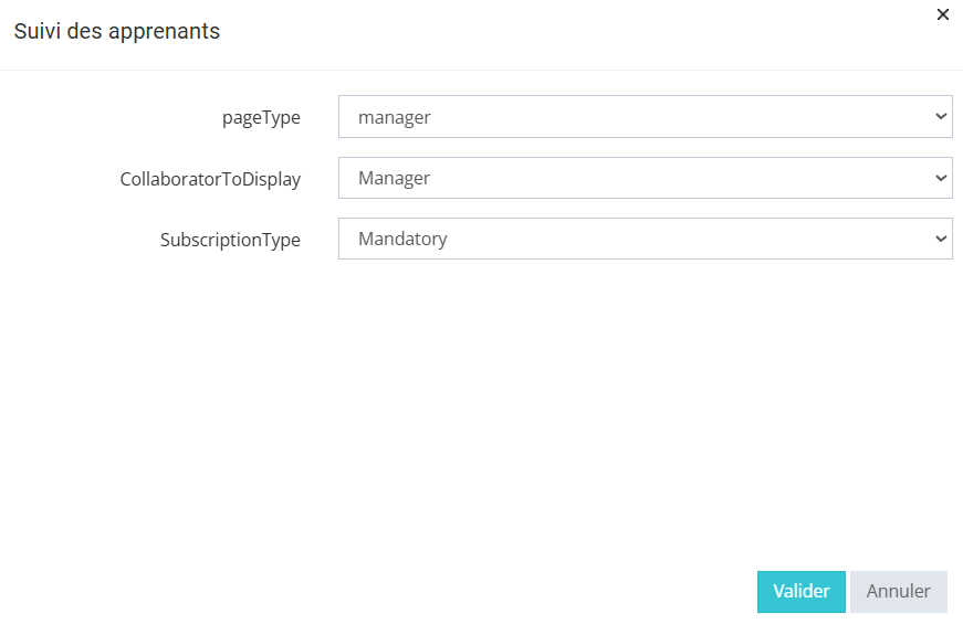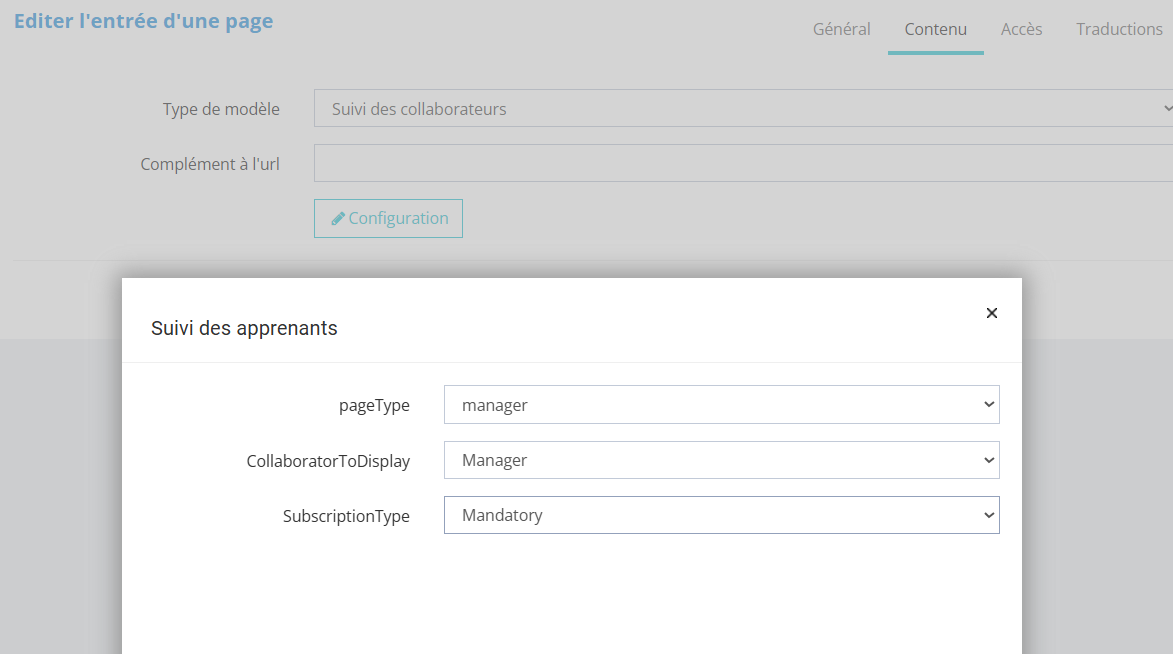 Dans l'onglet contenu, on choisit parmi la liste le type de modèle " Suivi des collaborateurs" |