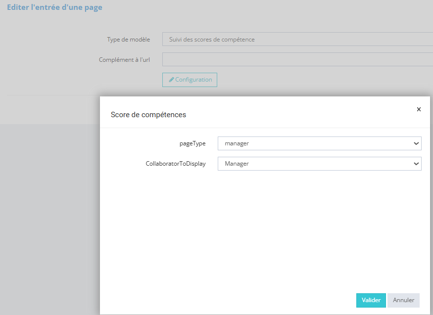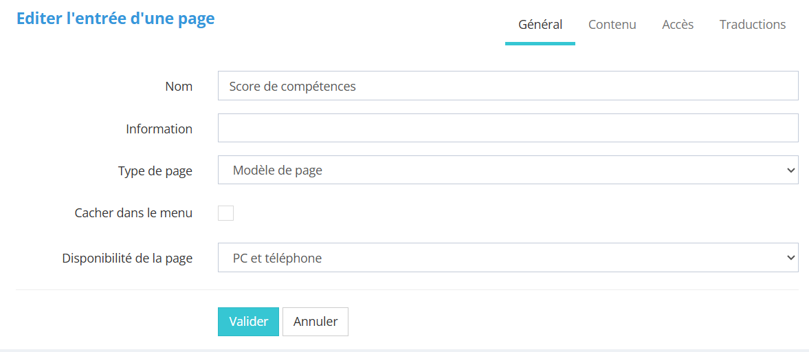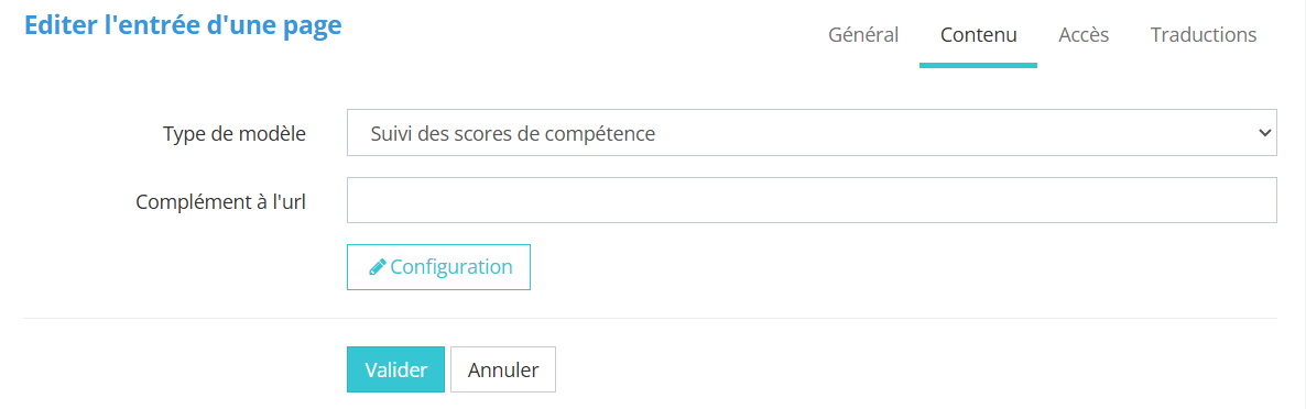 Dans l'onglet contenu, on choisit parmi la liste le type de modèle "Suivi des scores de compétence" |