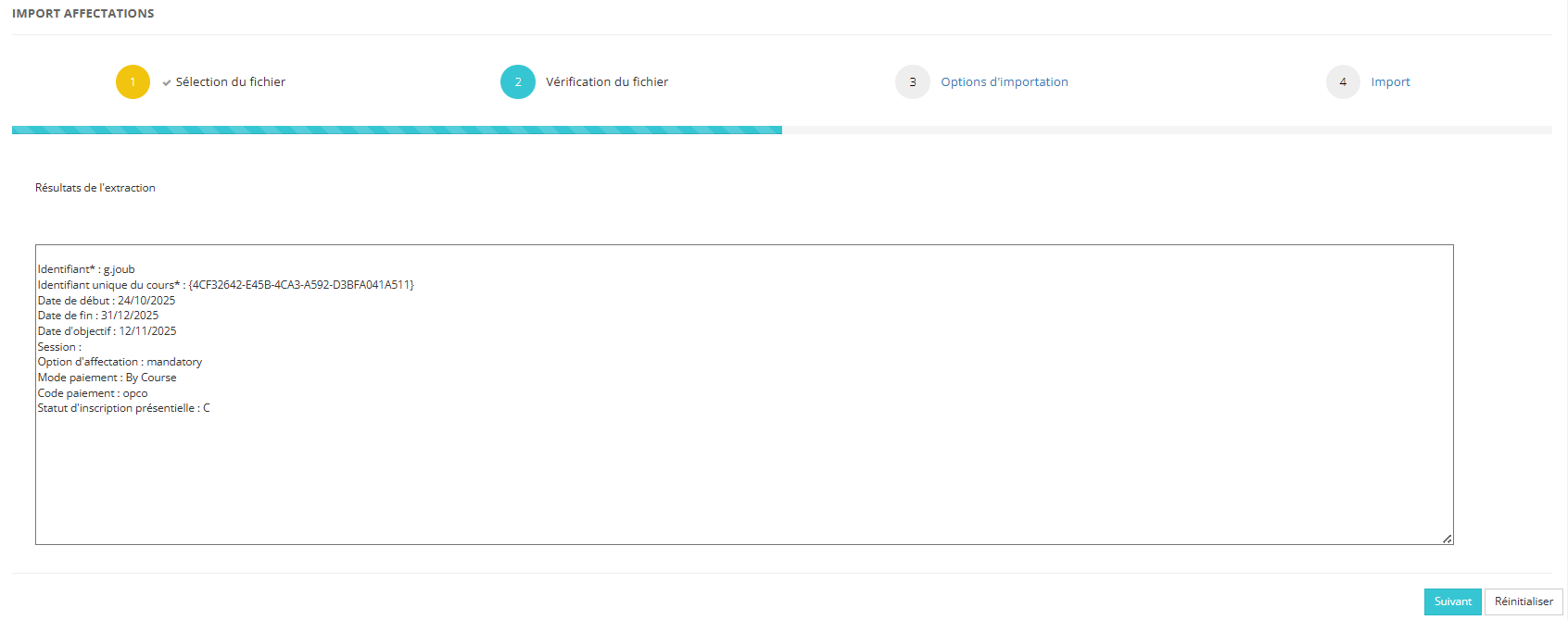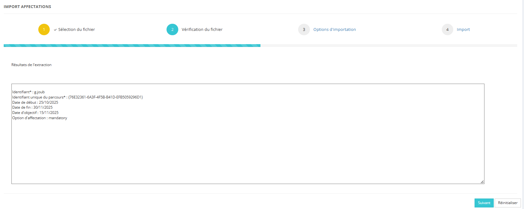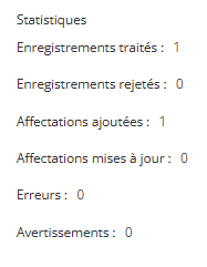 Si l’import est réussi, le nombre d’enregistrement et le nombre d’affectation ajoutés et mises à jour seront indiqués.