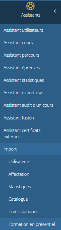 | L'import de formation en présentiel se fait dans Assistants/ Import/Formation en présentiel |