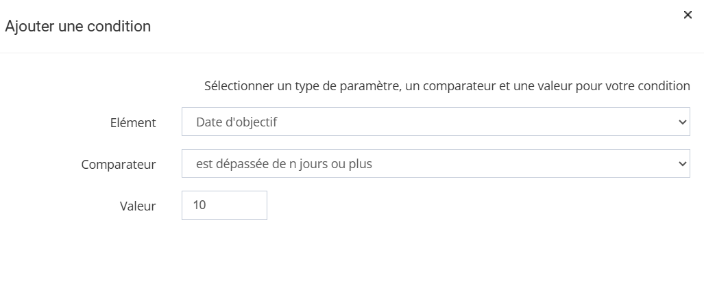 Il est possible d'ajouter une condition par rapport à la date d'objectif