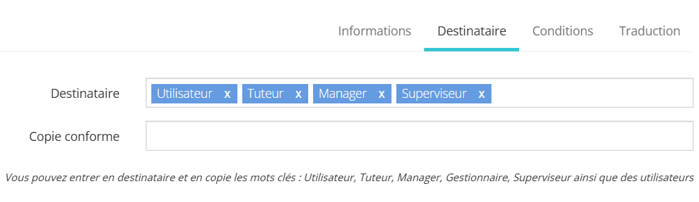Il est possible de définir une ou des personnes en copie de l’ensemble des notifications par mail envoyées