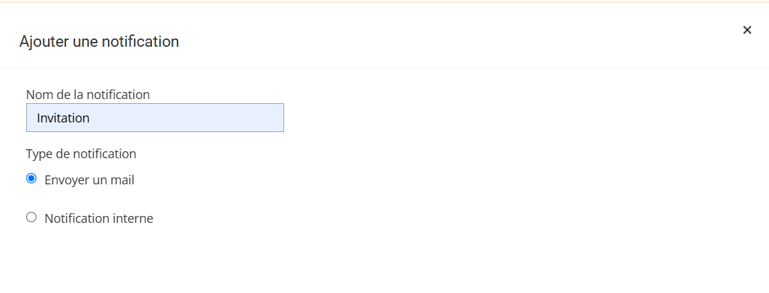 Dans la fenêtre, on donne un nom à cette notification, ici Invitation