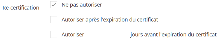 • Soit il peut se recertifier avant, et dans ce cas, on définit combien de jours avant.