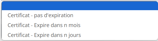 Lorsqu'on choisi un certificat avec expiration (en mois ou en jours), des champs suplémentaires s'affichent.